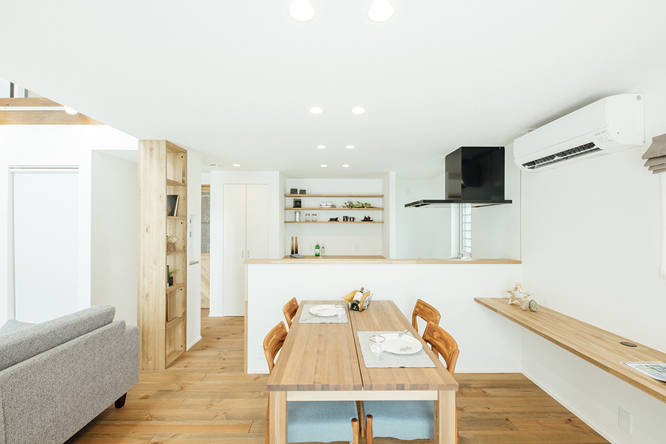 ナチュラルテイストの無垢床・造作建具でデザインされた快適な空間です。