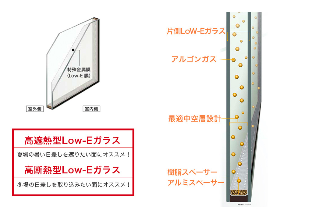 扉本体や枠に断熱樹脂や気密材を用いることで、冷気や暖気の侵入や流出を抑える工夫を施し、高気密・高断熱を実現しています。