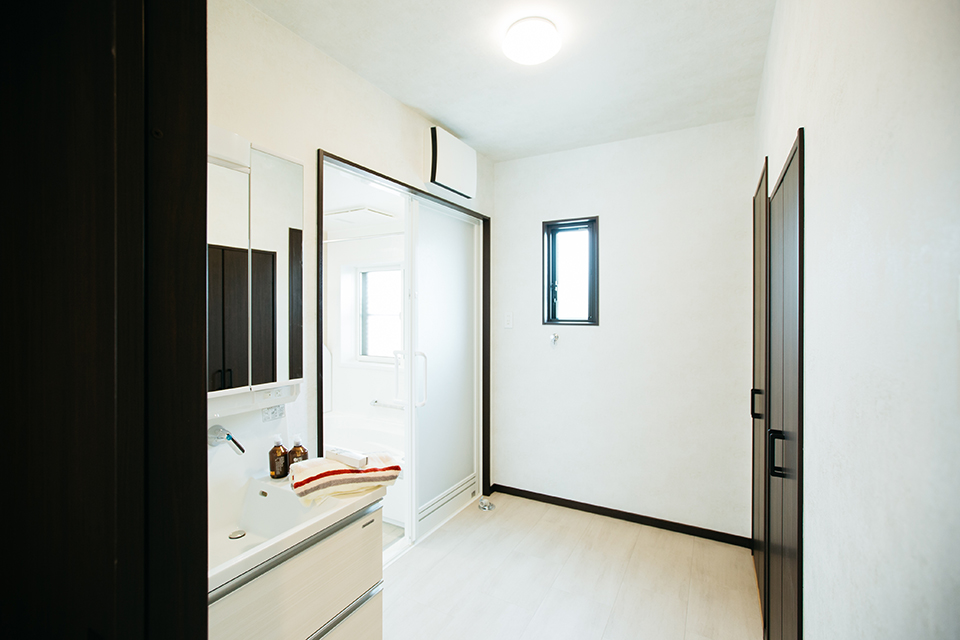 ライジングがご提案する「平屋みたいな2階建て」。1階に和室と主寝室、2階部分に子供部屋を配置することで将来の家族の成長に合わせた暮らしを実現できます。22.5帖のLDKは梁を見せた勾配天井で広々とした空間に。リビングから続く小上がりの和室は、お客様をもてなす寛ぎの場として利用できます。オープンフラットのホーローキッチンの奥には大容量のパントリー。奥様も大満足の家です。