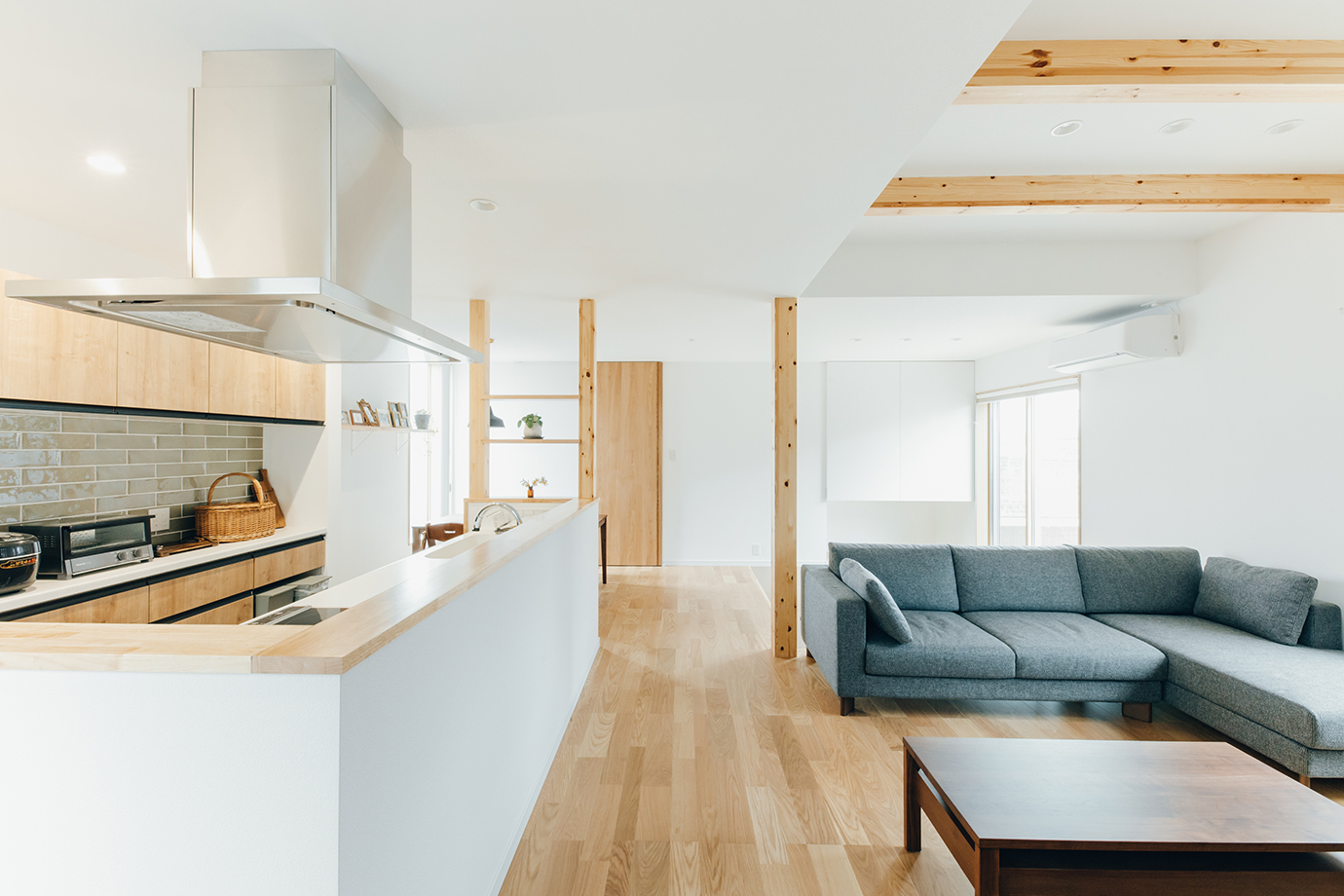シンプルだからこそ映える梁や窓のアクセント